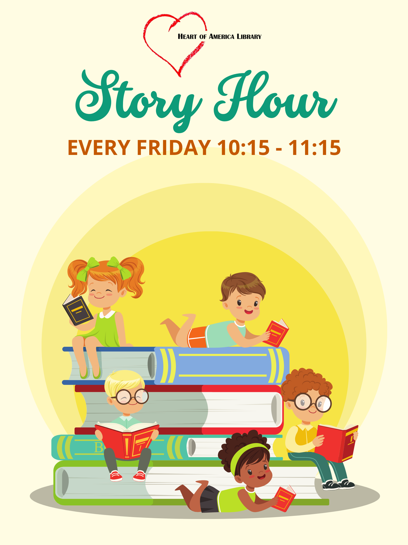Story Hour Your Heart of America Library has Story Hour EVERY FRIDAY from 10:15 to 11:15 a.m. Share: Click to email a link to a friend (Opens in new window) Email TweetLike Loading...